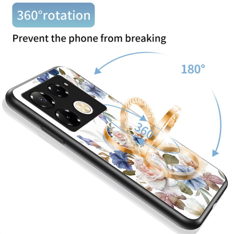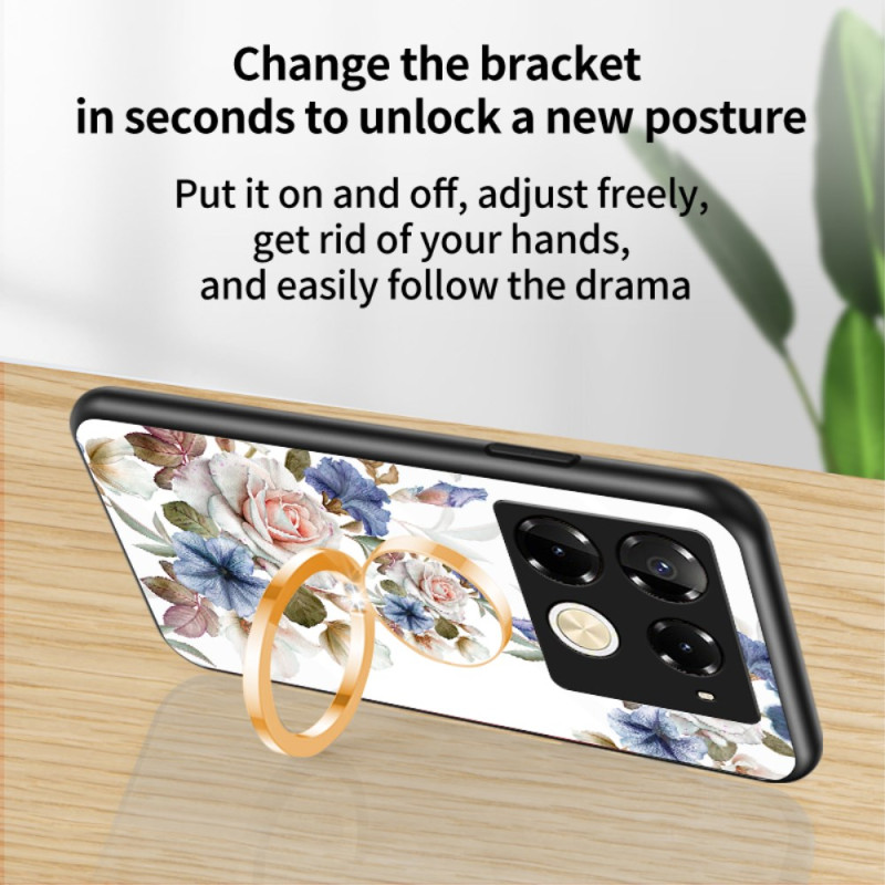 Skydda din Infinix Note 40 Pro 4G med detta eleganta fodral med blommotiv. Det har en vikbar stödring med strassstenar, en tuff baksida i härdat glas och en integrerad metallplatta för magnetiskt stöd.