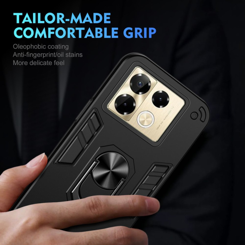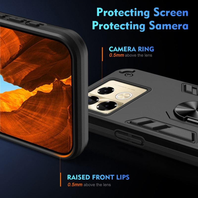 Skydda din Infinix Note 40 Pro 4G med detta robusta fodral som har en justerbar roterande hållare och är kompatibel med magnetiska bilfästen. Designat med upphöjda kanter för optimalt skydd av skärm och kamera.