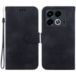 Elegant plånboksfodral till Infinix Note 40 med vackert lotustryck. Design i premium PU-läder med robust TPU-innerskal. Innehåller 3 kortfack, ett sidofack och en standfunktion.