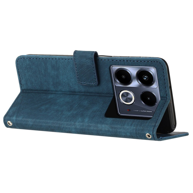 Upptäck vår eleganta plånbok för Infinix Note 40 i premium PU-läder med tryckta linjer. Skydda din telefon med stil och njut av 3 kortfack, ett anteckningsfack och en praktisk ställfunktion. Säker magnetisk stängning och avtagbar handrem ingår.
