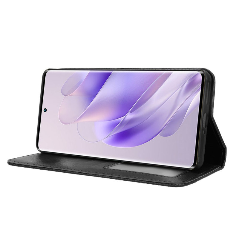 Snyggt retro plånboksfodral i PU-läder med graverad mosaikkant till Infinix Zero 30 4G X6731B. Justerbar stativfunktion, automatisk magnetstängning och flera kortfack. Fullt skydd för din enhet mot stötar och repor.