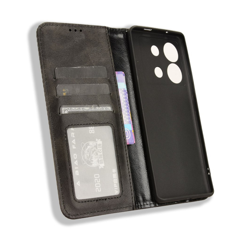 Elegant plånboksfodral i retro PU-läder för Infinix Zero 30 5G. Raffinerad design med graverad mosaikkant, integrerad korthållare och justerbart stativ. Automatisk magnetisk stängning för komplett skydd och praktisk användning i vardagen.