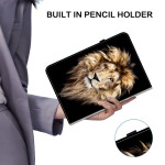 Upptäck vårt eleganta och funktionella fodral för iPad Pro 13 (2025) / 13 (2024). Tillverkat av högkvalitativt PU-läder, erbjuder det komplett skydd med en attraktiv design. Dra nytta av det vikbara stativet, kortfacken och pennöglan. Dess lejonhuvudmotiv ger din surfplatta en unik touch av stil.