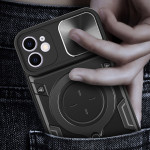 Upptäck vårt innovativa skyddsfodral för iPhone 12. Med ett skjutbart kamerahölje och ett 360° roterande stöd kombinerar detta fodral funktionalitet och säkerhet. Tillverkat av TPU och plast, ger det optimalt skydd mot stötar och repor.