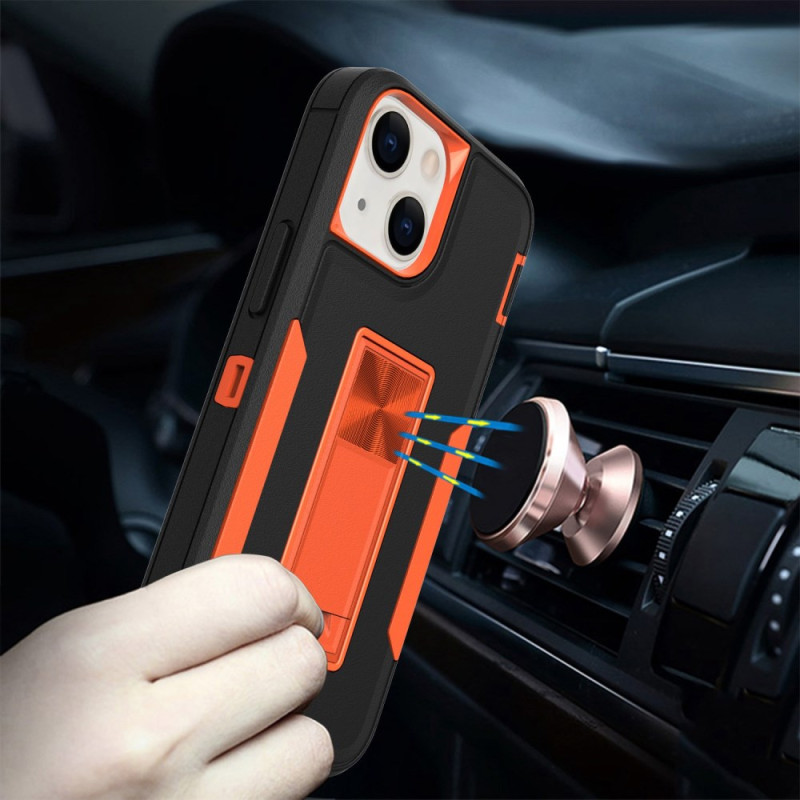 Skydda din iPhone 13 mini med detta robusta fodral som har ett integrerat stativ och en metallplatta för magnetisk fastsättning i bilen. Anti-chock-design ger optimalt skydd mot skal och repor.