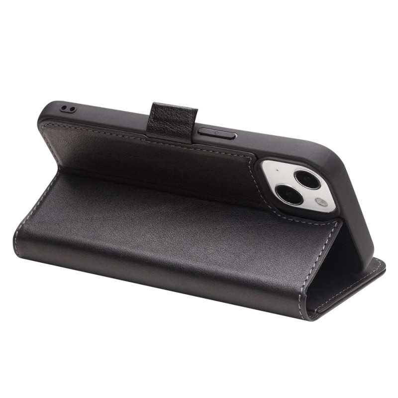 Elegant, skyddande plånboksfodral för iPhone 13 Mini. Sofistikerad design med dubbel magnetstängning, integrerad stativfunktion och kortfack. Optimalt skydd för din smartphone mot stötar och repor.