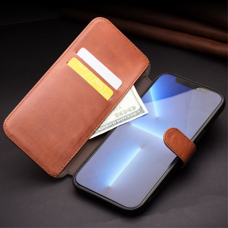 Elegant plånboksfodral i äkta läder för iPhone 13 Mini. Fullt skydd med kortfack och kontantficka. Säker magnetisk stängning och enkel installation. Skyddar din telefon från repor och stötar i vardagen.