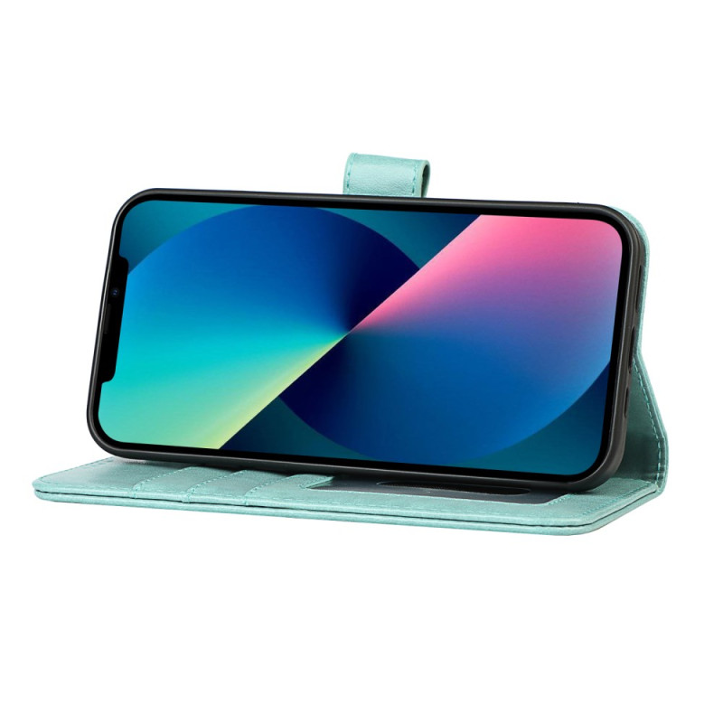Upptäck detta eleganta plånboksfodral för iPhone 13 Mini. Designat i texturerat läder med ett tryckt motiv, kombinerar det stil och funktionalitet. Njut av flera kortplatser, ett integrerat stativ och fullt skydd...