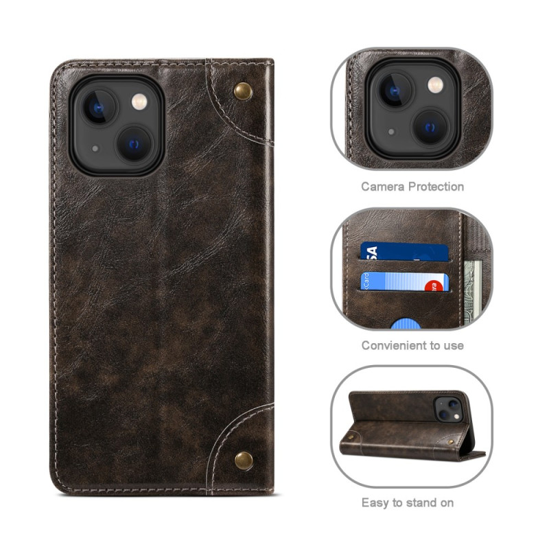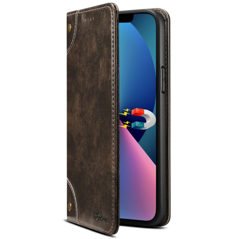 Snyggt plånboksfodral med automatisk magnetstängning för iPhone 13 Mini. Kombinerar dubbla lager stötskydd med praktisk funktionalitet, har kortfack, ett anteckningsfack och kan omvandlas till ett visningsstativ. Optimalt skydd med upphöjda kanter för kameran.