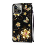 Transformez votre iPhone 13 Mini en accessoire de mode avec cet étui portefeuille élégant orné de fleurs dorées et papillons. Doté d'un support pliable pratique, de multiples rangements pour cartes et d'une dragonne confortable, il allie style et fonctionnalité au quotidien.