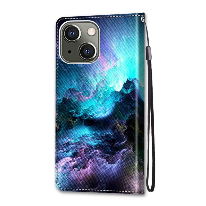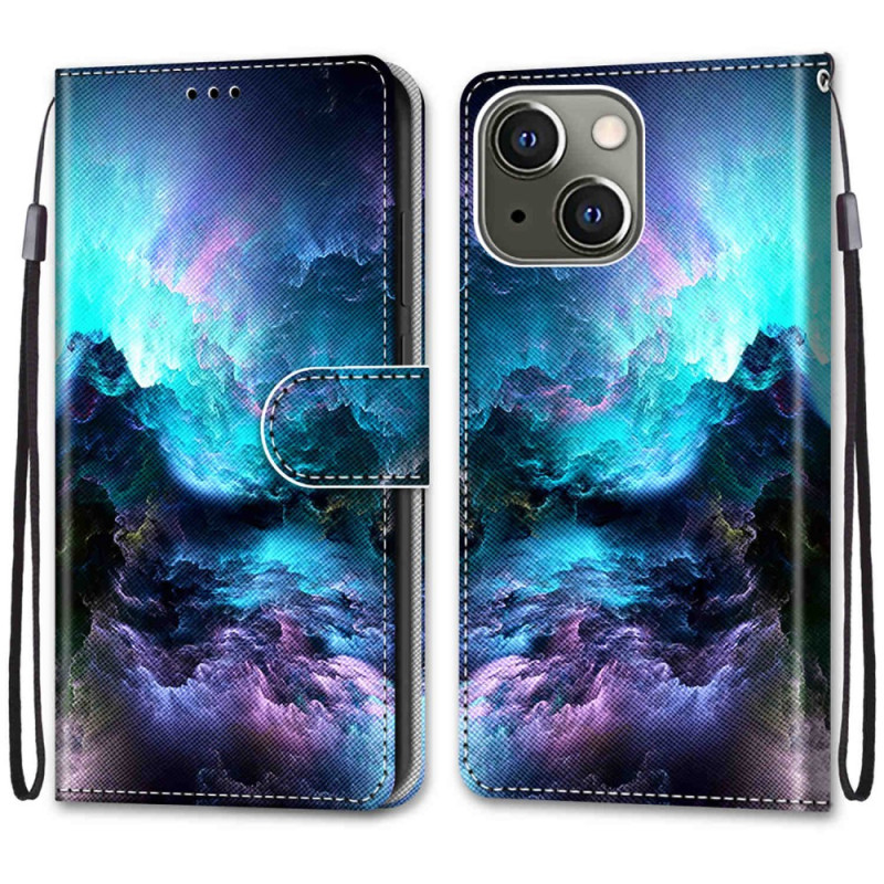 Skydda din iPhone 13 Mini med stil med detta plånboksfodral med ett fängslande nebulosamotiv. Det har ett praktiskt hopfällbart stativ, integrerade kortfack och en handledsrem för enkel transport.