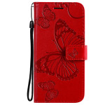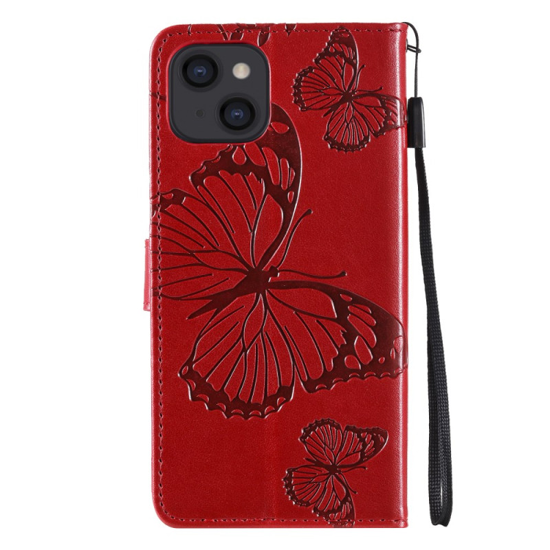 Plånboksfodral i premium PU-läder för iPhone 13 Mini med elegant graverat fjärilsmotiv. Med 2 kortfack, sidofack, handsfree-funktion och praktisk handrem för ett komplett och snyggt skydd.