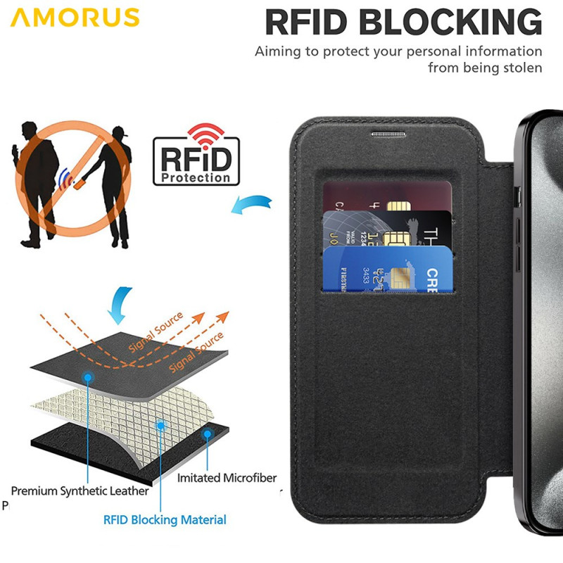 Skydda din iPhone 13 Pro Max med stil med detta MagSafe-kompatibla premiumfodral i läder. Med en integrerad korthållare och RFID-blockeringsteknik kombinerar det elegans och säkerhet för ditt dagliga liv.