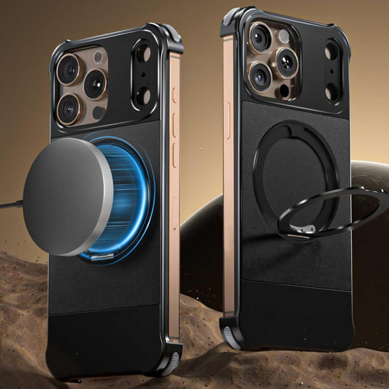 Snyggt magnetiskt fodral för iPhone 13 Pro Max med integrerat multifunktionellt stativ. MagSafe-kompatibelt och trådlös laddning. Kantlös design med förstärkt hörnskydd. Enkel glidande installation.