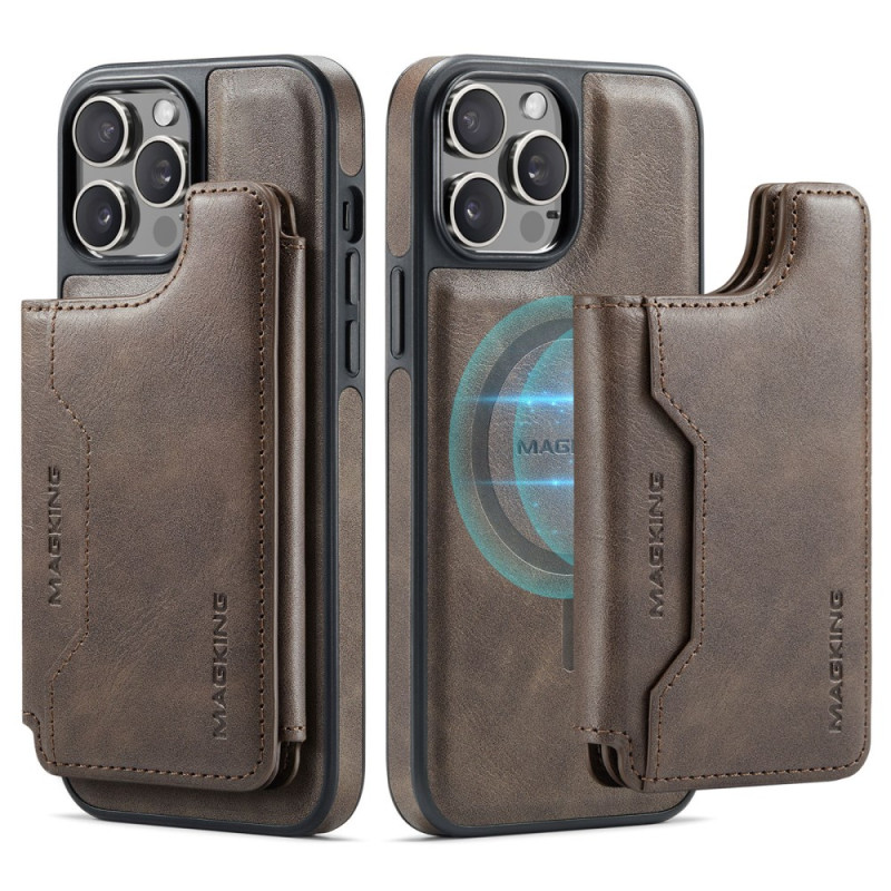 Upptäck MAGKING K3 Series-fodralet för iPhone 13 Pro Max: ett innovativt 2-i-1-fodral med en avtagbar MagSafe-kompatibel magnetisk plånbok. Njut av justerbart stöd, anti-RFID-skydd och 7 kortplatser.