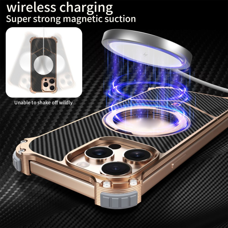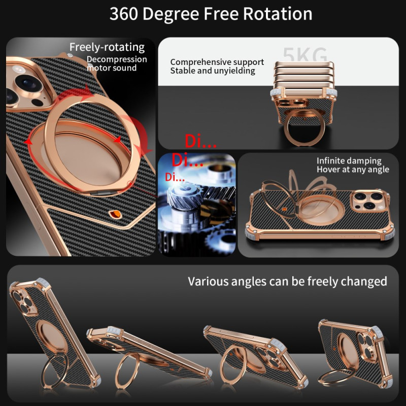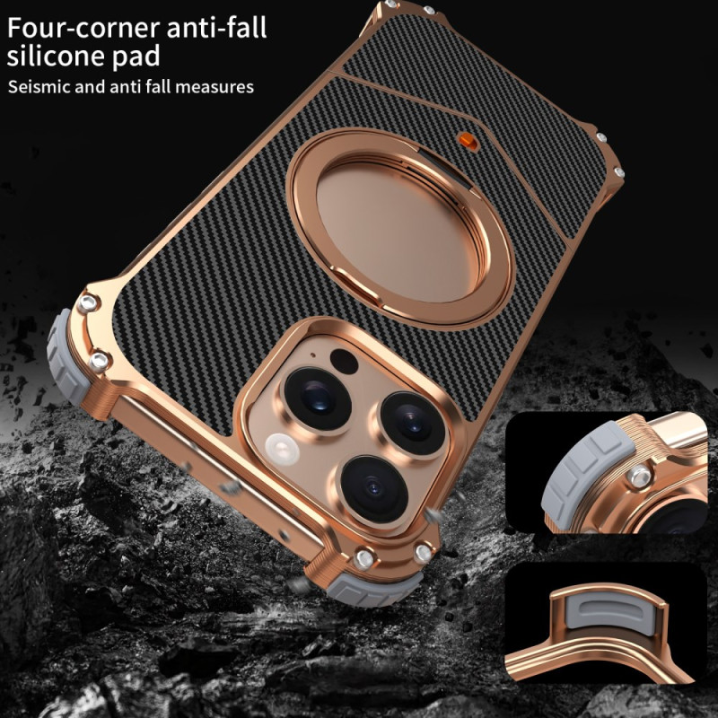 Skydda din iPhone 13 Pro Max med stil med detta magnetiska fodral med kantlös design. Raffinerad kolfiberstruktur, 360° roterande kickstand och förstärkt hörnskydd med luftkuddar som motverkar stötar. MagSafe-kompatibelt för optimal trådlös laddning.