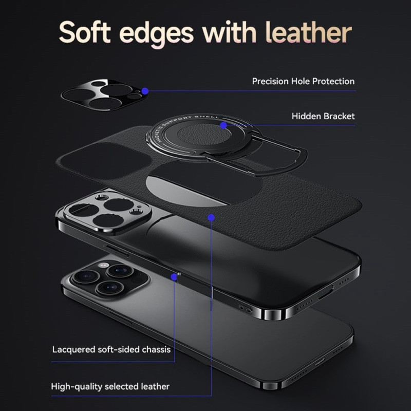 Upptäck det perfekta fodralet för din iPhone 13 Pro Max: MagSafe-kompatibelt, integrerat vikbart stativ för handsfree-visning, förstärkt skydd för kameran och skärmen.