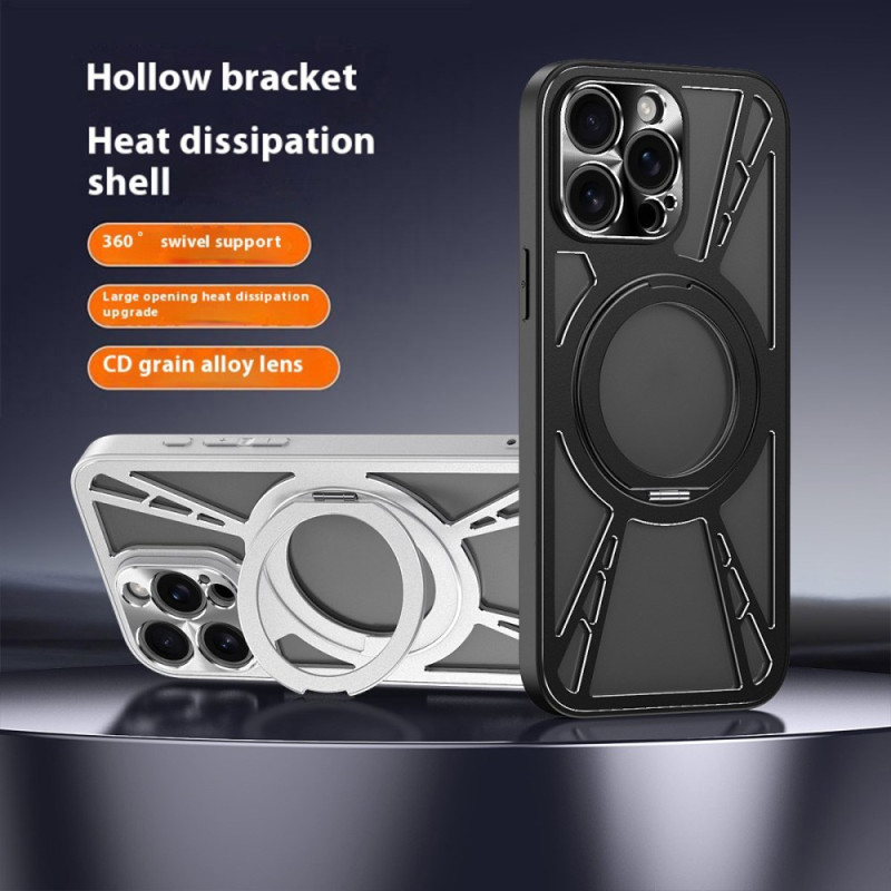Skydda din iPhone 13 Pro Max med detta innovativa fodral som har ett integrerat roterande stativ, MagSafe magnetisk kompatibilitet och ett värmeavledningssystem. Förstärkt design för optimalt skydd mot fall.
