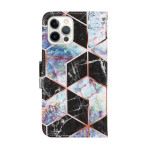 Skydda din iPhone 13 Pro Max med stil med detta multifunktionella plånboksfodral med en sofistikerad svart geometrisk design. Med integrerade kortfack och en praktisk handrem kan fodralet även användas som stativ för handsfree-användning.