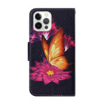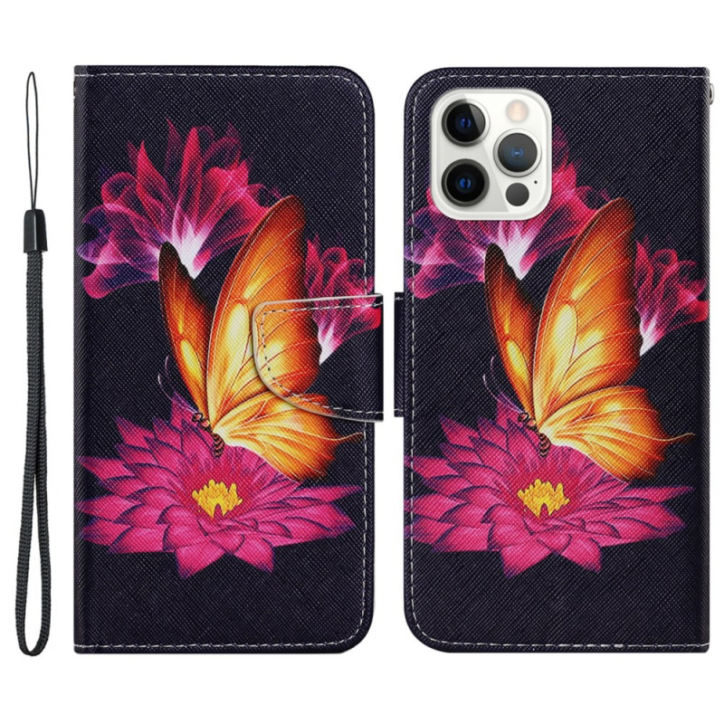 Skydda din iPhone 13 Pro Max med stil med detta sofistikerade plånboksfodral med fjärils- och blommotiv. Det har praktiska kortfack, en säker handledsrem och ett integrerat stativ för handsfree-visning.