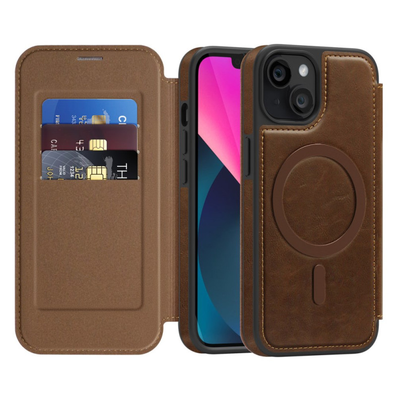 Upptäck vårt MagSafe-kompatibla iPhone 13-fodral med integrerad korthållare och RFID-blockeringsteknik. Tillverkat av högkvalitativt TPU och PU-läder ger det ett hållbart och elegant skydd för din enhet. Kortfacken och de upphöjda kanterna gör det praktiskt och säkert att använda varje dag.