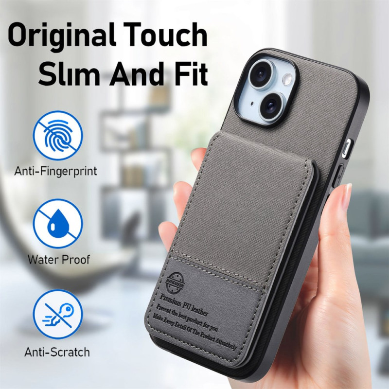 Detta fodral för iPhone 13 kombinerar stil och funktionalitet. Det är tillverkat av kvalitetsmaterial och erbjuder RFID-skydd, ett justerbart stativ och en säker korthållare. Den eleganta, kompakta designen gör det till ett praktiskt och modernt tillbehör till din telefon.