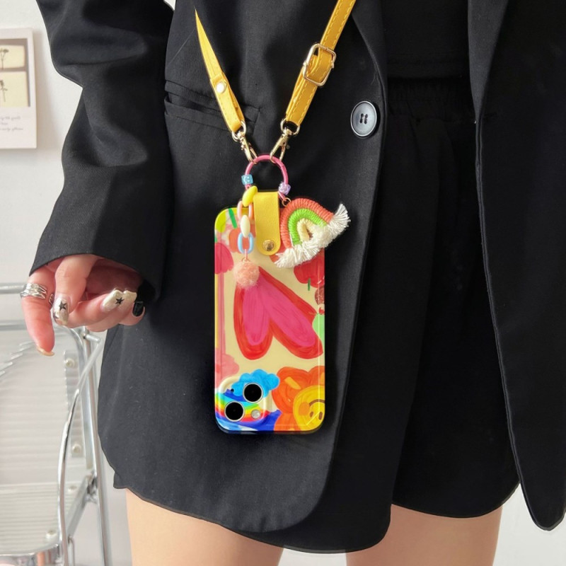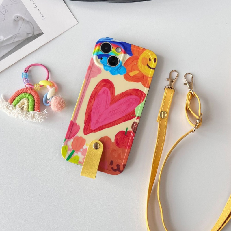 Upptäck vårt eleganta fodral för iPhone 13, som kombinerar stil och skydd. Med sitt graffitihjärtmotiv och regnbågsdekoration ger det en touch av fantasi till din telefon. Den justerbara läderremmen gör det enkelt att bära, medan den stötsäkra designen skyddar din enhet vid daglig användning.