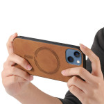 Upptäck vårt premium läderfodral för iPhone 14 Plus, som kombinerar elegans och skydd. Det är MagSafe-kompatibelt och erbjuder bekväm trådlös laddning. Med högt skydd för skärm och kamera och integrerad magnetfolie för bilfästet ger detta slimmade fodral optimalt skydd mot droppar och repor.
