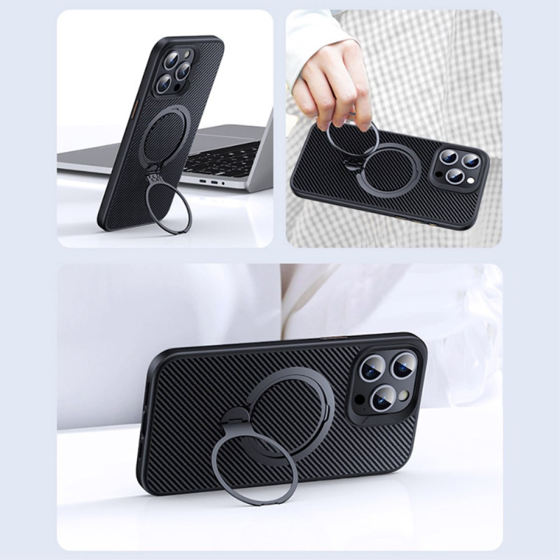 Protégez votre iPhone 14 Pro Max avec élégance grâce à cette coque robuste en PC+TPU à texture fibre de carbone. Dotée d'un anneau support rotatif 360° et compatible MagSafe, elle allie style et fonctionnalité pour une expérience optimale.