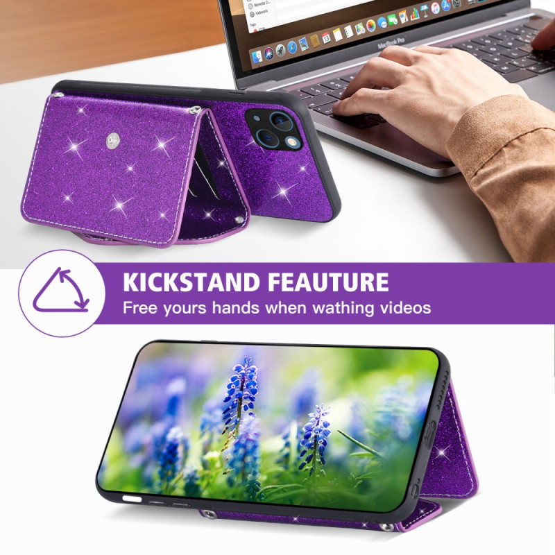Upptäck vårt eleganta och funktionella skyddsfodral för iPhone 14. Med sitt integrerade stativ och praktiska korthållare kombinerar det stil och funktionalitet. Tillverkat av högkvalitativt PU-läder och slitstark TPU ger detta fodral optimalt skydd mot droppar, repor och damm. Detta fodral kombinerar funktionalitet och stil och ger ett komplett skydd för din iPhone 14 samtidigt som det är enkelt att använda varje dag.