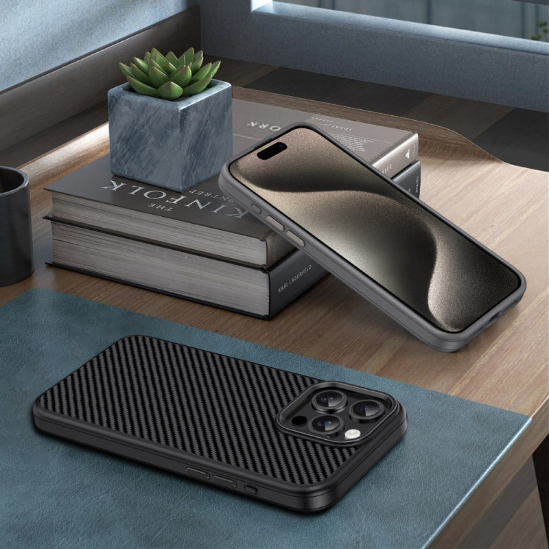 Upptäck IPAKY-fodralet för iPhone 15 Plus, som kombinerar stil och skydd. Tillverkat av högkvalitativ TPU med en snygg kolfiberstruktur, ger det exceptionell hållbarhet och förbättrat grepp. Metallramen runt linsen och oberoende metallknappar ger extra skydd och exakt taktil användning.