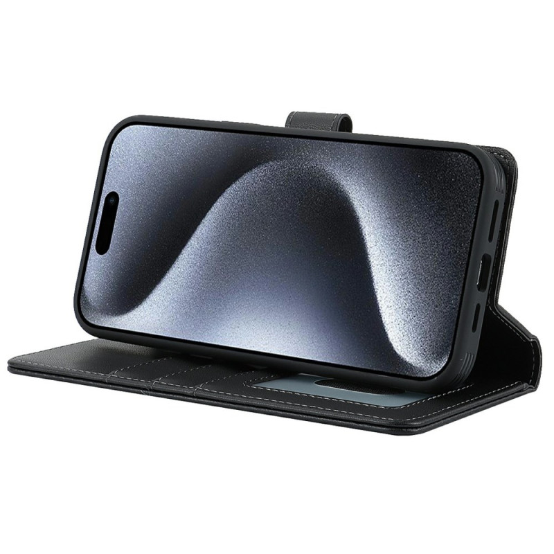 Upptäck vårt högkvalitativa plånboksfodral för iPhone 15 Pro Max. Tillverkat av texturerat PU-läder och mjuk TPU ger det ett hållbart stötskydd och ett snyggt utseende. Dess avtagbara 2-i-1-design med MagSafe-kompatibilitet ger dig maximal mångsidighet.