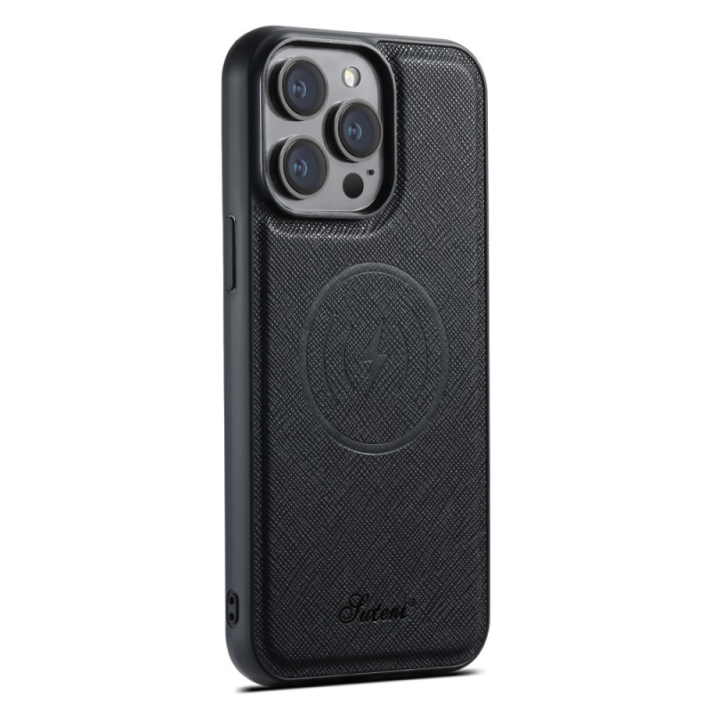 Upptäck vårt mångsidiga fodral i texturerat läder för iPhone 15 Pro Max. Med en avtagbar korthållare, stativfunktion och MagSafe-kompatibilitet kombinerar det stil och funktionalitet. Dess PU-läder och TPU-konstruktion ger optimalt skydd mot repor och stötar.