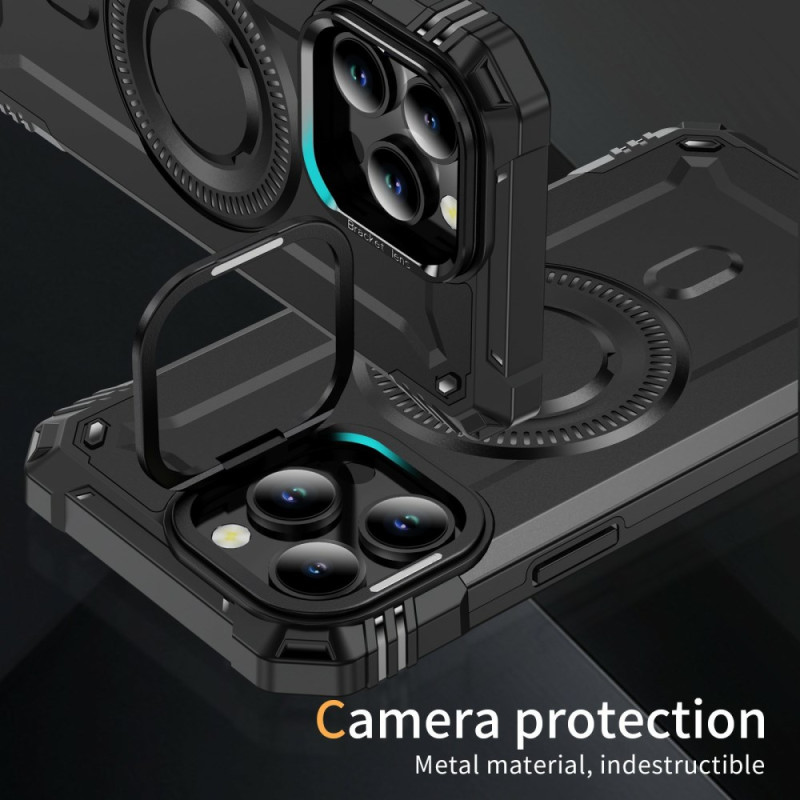 Upptäck vårt robusta magnetiska fodral för iPhone 15 Pro Max. Med militärklassat stötskydd, ett justerbart metallstativ och MagSafe-kompatibilitet erbjuder det optimalt skydd och exceptionell funktionalitet. Njut av en förbättrad användarupplevelse tack vare dess innovativa funktioner.