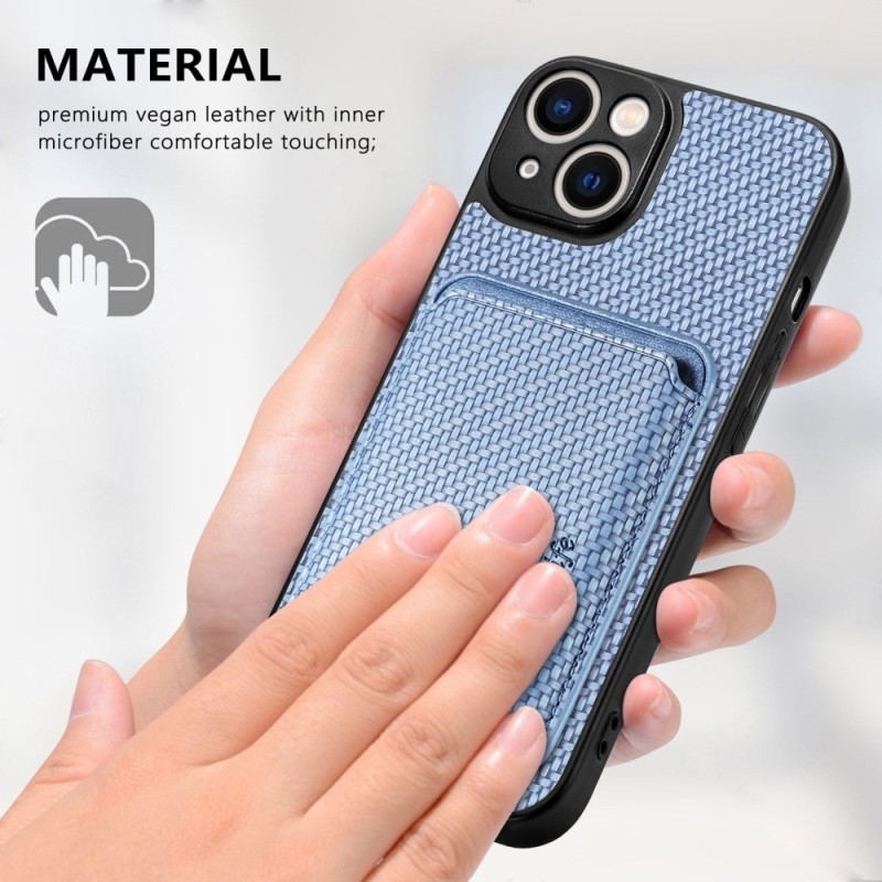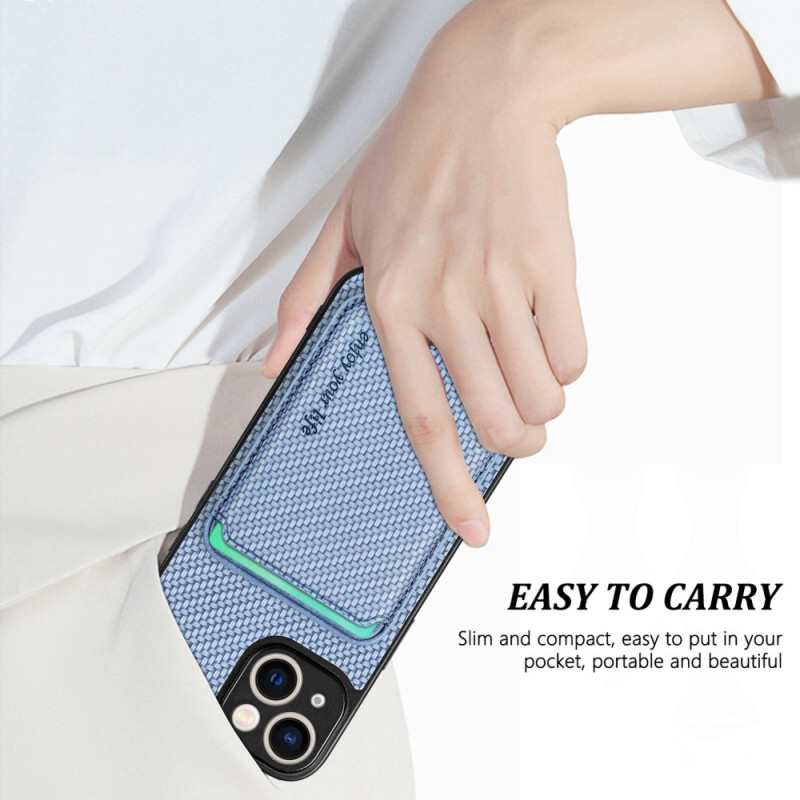 Din iPhone 15 är underbart skyddad i detta kolfiberfodral med löstagbar korthållare.