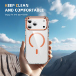 Med sin transparenta, moderna design skyddar detta iPhone 17 Pro-fodral effektivt din telefon samtidigt som det förhöjer dess skönhet. Det är tillverkat av högkvalitativ plast och TPU och ger optimal stöt- och slagtålighet. Linsskyddet i metall, som kan omvandlas till ett stativ, gör att du kan njuta av en handsfree-upplevelse som är perfekt för att titta på videor eller ringa videosamtal.