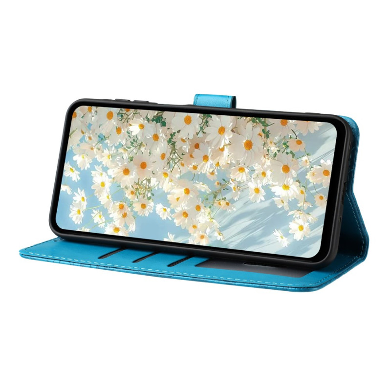 Stilrent plånboksfodral med präglat daisy-motiv för iPhone 17E / 16E. Full funktionalitet med 3 kortplatser, integrerad plånbok och handsfree-hållare. Förstärkt skydd mot droppar och repor...