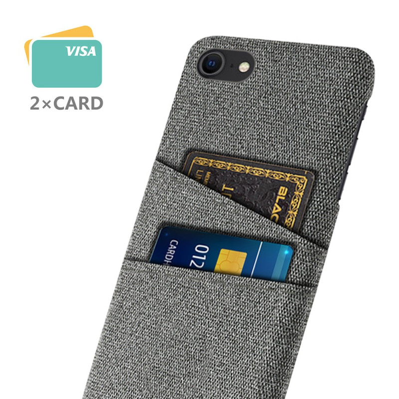 Din iPhone SE 3 / SE 2 / 8 / 7 är väl skyddad med det här tygfodralet med praktiska korthållare.