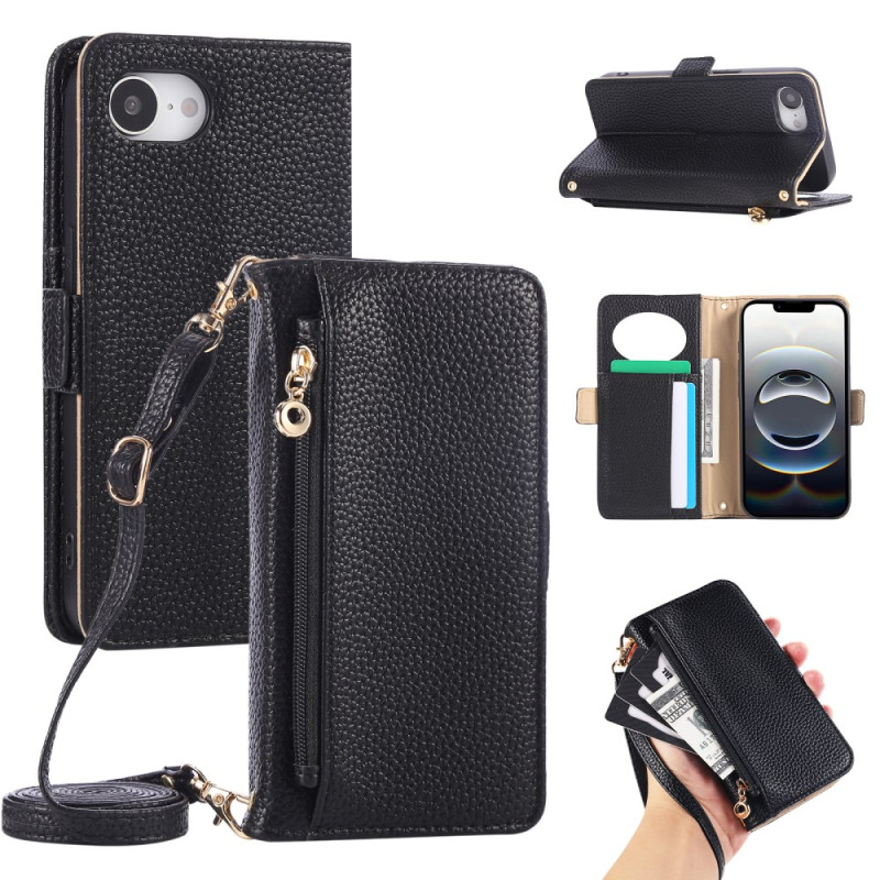 Stilrent plånboksfodral för iPhone 17E / 16E som kombinerar stötskydd och funktionalitet. Har en integrerad spegel, flera kortplatser, RFID-blockeringsteknik och en avtagbar axelrem för handsfree-bärande.