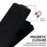 Snyggt läderfodral med vertikal flik för iPhone 17E / 16E. Med 3 kortfack, justerbart stöd för flera vinklar och säker magnetisk stängning. Levereras med en avtagbar axelrem för bekväm bärning.