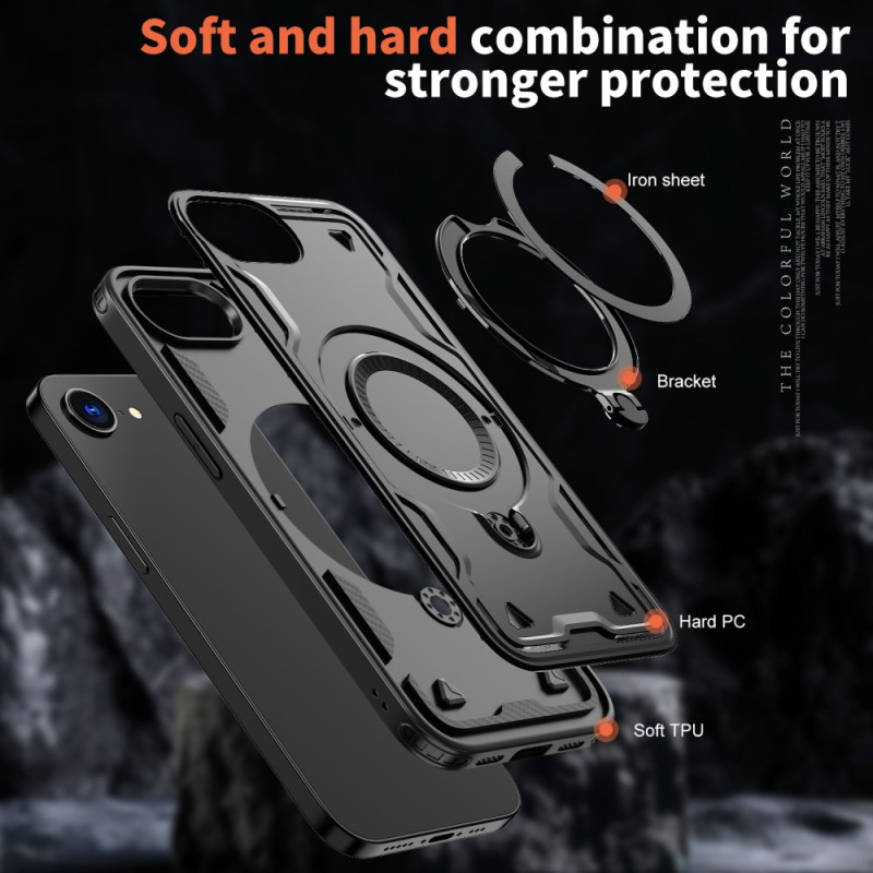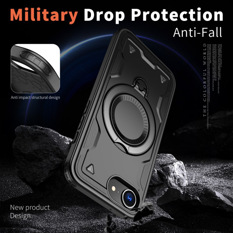 Protégez votre iPhone avec cette coque ultra-résistante de qualité militaire. Compatible MagSafe, elle intègre un support rotatif à 360° pour une expérience mains libres optimale. Conception robuste avec bords surélevés pour protéger l'écran et l'objectif photo.
