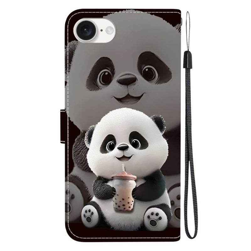 Elegant plånboksfodral med Milk Tea Panda-motiv för iPhone 17E / 16E. Raffinerad design som kombinerar optimalt skydd och funktionalitet. Integrerat vikbart stativ för bekväm visning, 2 kortfack och sedelfack. Säker magnetisk stängning och avtagbar handrem ingår.