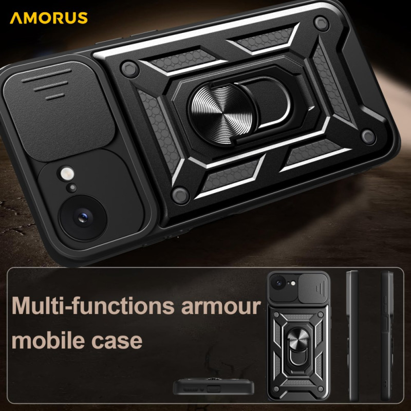Skydda din iPhone 17E / 16E med stil med detta premium AMORUS-fodral med roterande kickstand, skjutbart kameraskydd och slagtålighet i militärklass. Kompatibelt med magnetiskt bilfäste.