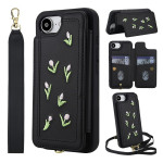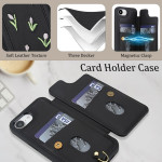 Upptäck detta eleganta PU-läderfodral med handgjort blomsterbroderi för iPhone 17e / 16e. Det kombinerar stil och funktionalitet med integrerad magnetisk korthållare, standfunktion och två avtagbara remmar som kan bäras över kroppen eller på handleden.