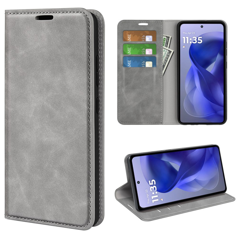 Upptäck vårt plånboksfodral i PU-läder för Motorola Moto G Power (2025). Det kombinerar elegans och funktionalitet och erbjuder komplett skydd, kortförvaring, ett integrerat stativ och en magnetisk stängning.