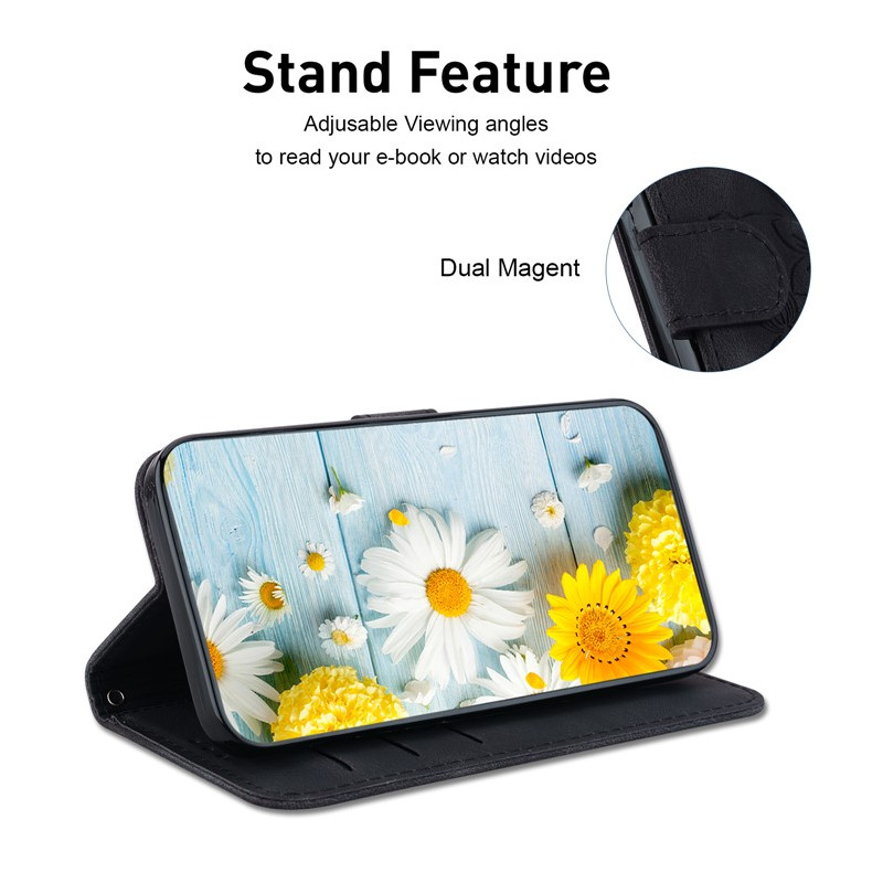 Det här fodralet är inte bara vackert, det är också praktiskt tack vare plånboksfunktionen och det justerbara fällbara stativet.