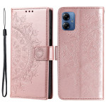 Upptäck vårt plånboksfodral för Motorola Moto G14 4G, dekorerat med ett mandala-blommotiv.