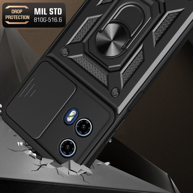 Upptäck vårt innovativa skyddsskal för Motorola Moto G45 5G / G34 5G. Tillverkat av högkvalitativa material och erbjuder skydd av militär kvalitet, ett praktiskt roterande fäste, skydd för mobilobjektiv och kompatibilitet med magnetiska fästen. Perfekt för daglig användning och optimalt skydd för din smartphone.