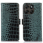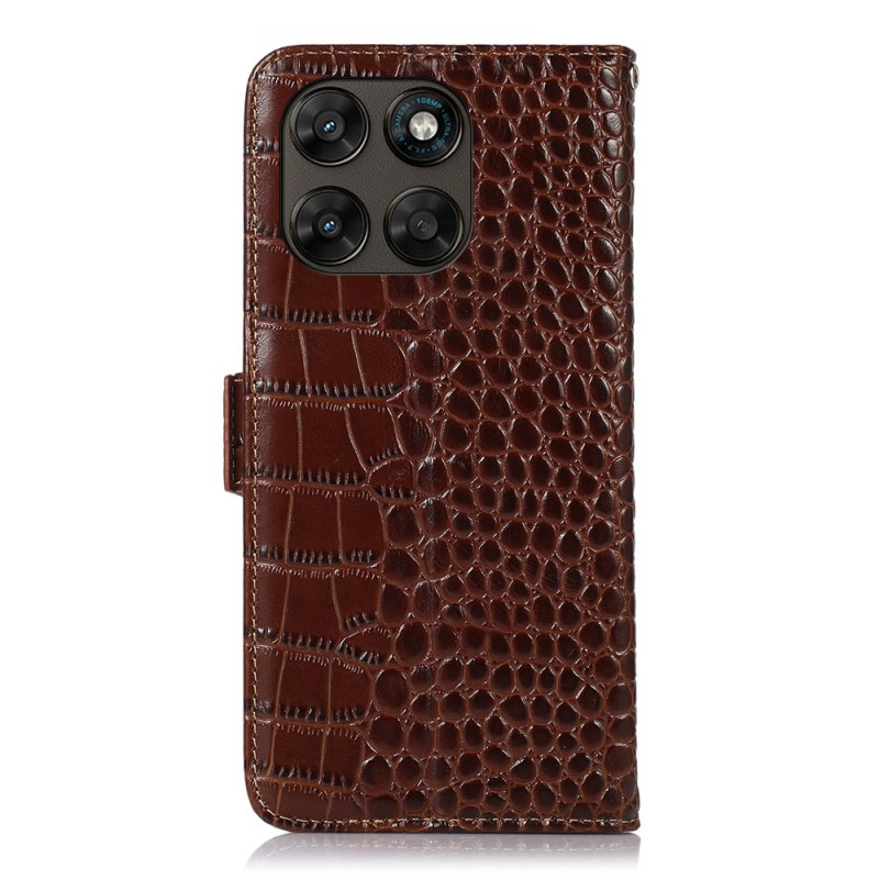 Skydda din Motorola Moto G77 5G / G67 5G med detta lyxigt utformade plånboksfodral i svart krokodilskinn.