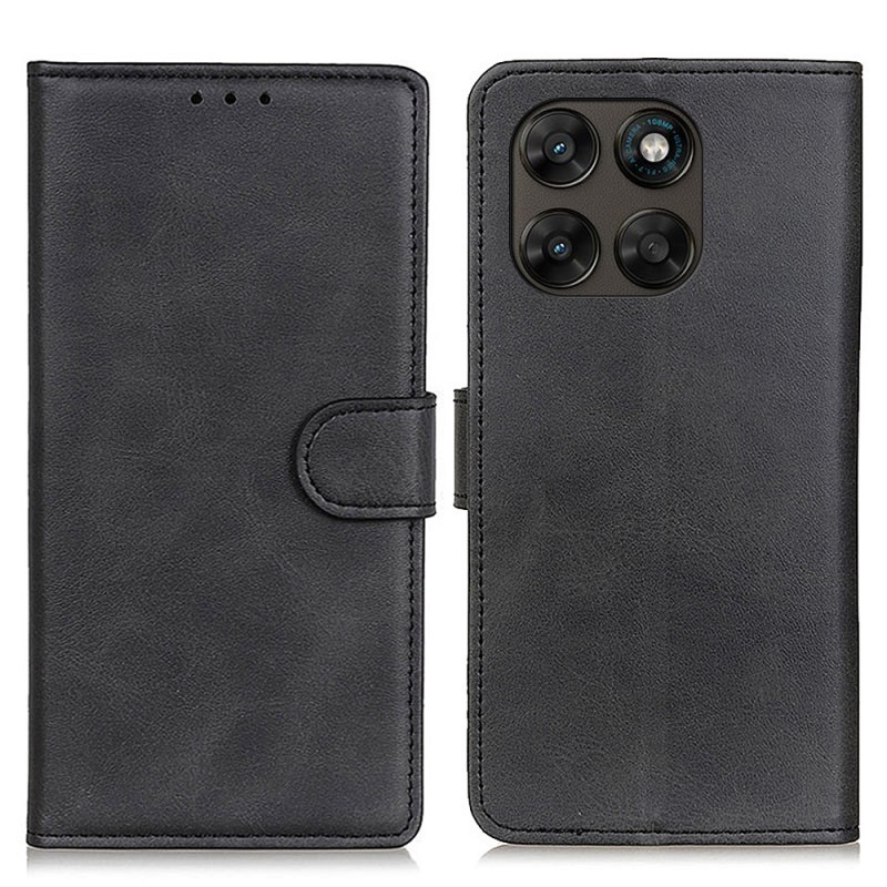 Skydda din Motorola Moto G77 5G / G67 5G med detta eleganta svarta plånboksfodral med kohudtextur.